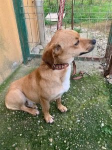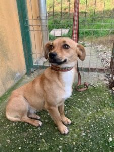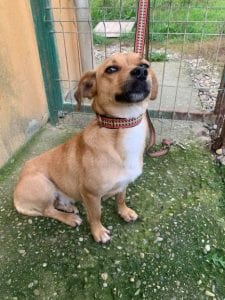 Amy has only recently come into Happys so she is still being assessed. She is very sweet, although understandably still a little nervous. She is good with other dogs and walks well on the lead.