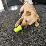 My recall on a lead when out is good. I hear “Boz Boz” and come running back for a reward!   My favourite thing indoors are playing with my toys, or my Kong, I’m mesmerised with watching tv when it’s on … it’s so clever!   We do have play time but on my terms at the moment.