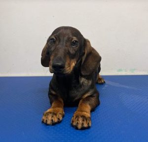 Poor, sweet Darcie used to have a home along with her brother. The owners decided they didn’t want either of them as they used to chase their chickens in the yard. The male was given away to someone and Darcie (at just 3 months of age) was going to be dumped in the forest to fend for herself. A friend of the owners called us to see if we could help. Dad is needs to be rehomed with another neutered dog