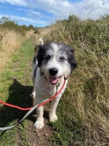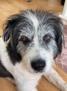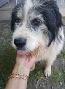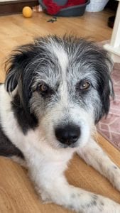 Hello, my name is Dusty. I have been in my foster home, a little while now. This place is nothing like where I was living in the mountains. There are loads of comfy beds everywhere that I like to lie in, although some of them are on the small side. I now get food in a shiny bowl every day and lots of treats in between my favourite things are meaty bones and fresh eggs – yum yum. There are other dogs in this place but they are a lot younger than me I like to try and play with them but I get tired quickly so I mostly just watch. There are also some small fluffy things I’m told are cats. One of them doesn’t like me very much so I stay out of her way. The people in my new place are very kind to me. They give me lots of cuddles and butt scratches which make me do a happy dance. I like going in the car with the other dogs to go for walks. I have to wear a thing called a collar and lead, but I don’t mind and I like to walk along with the people. I’ve been to lots of new places on these walks, including something called a beach I liked going in the wet sand, it made my paws feel nice and cool. There were lots of other dogs at the beach. I didn’t like the ones that were bigger than me so I shouted at them to go away. My people told me it was ok and we walked away from the big dogs. I was worried the big dogs were going to take my new friends away. I love this place but it is a bit crowded with 4 dogs in it so I would like somewhere a bit more peaceful. Anyway, I’m feeling a bit sleepy now and I need to make the important decision of which bed to sleep on.  If you have lots of comfy beds in your home and you can feed me lots of yummy treats and give me butt scratches then please complete an adoption form. Love Dusty xx