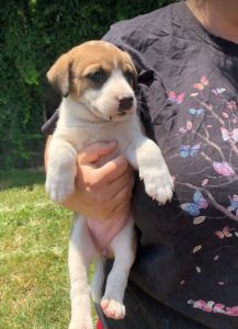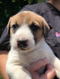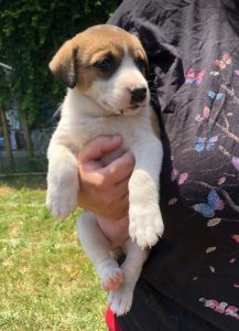 Hetty was found with her Mum Alice and her three siblings. Alice had been dumped in the middle of nowhere, beside a busy road and left to fend for herself and her four two week old puppies, left to their inevitable fate, like so many unwanted dogs in Romania. Thankfully they were found and brought to safety with their Mum. Alice is medium sized and was a truly fabulous Mum, very gentle and attentive. We think the puppies will be medium sized dogs. Hetty was brought up amongst cats, dogs, chickens, goats and children, so is very well socialised. She is a sweet, gorgeous and happy pup. We think she would benefit from living with another dog
