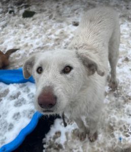 Leila is now in UK foster. Leila is very sweet, gentle and good with other dogs. She is clean in the house, walks well on a lead and is thriving in a house after being in kennels her entire life. She is currently living with a friendly female dog and is gaining confidence. She adores attention and having strokes and has recently started enjoying playing with soft toys.
