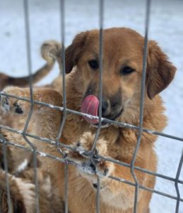 Reba was found with her 3 siblings and her mum Mia, miles from anywhere on a small track road by our vet Denisa, who rescued them and bought them to Happys. They were all starving hungry and cold with no food in sight. Mia has done an amazing job looking after her 4 pups and keeping them alive. Reba was the most nervous of the pups. She has grown into a sweet and gentle girl and she is good with other dogs. We think she would be best rehomed with another friendly and confident dog. She has a beautiful thick and fluffy coat. She is not overly active but loves to play with her kennel mates.