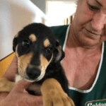 Royce and his brothers were found abandoned at a truck stop with no mum around. They are incredibly sweet and good with children. They will be medium size. The pups are growing fast and will be ready to travel to the UK at the end of August.