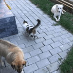 She is very sweet, gentle and friendly with humans, children and other dogs and as you can see from the photo, she is ok with cats, although we are not sure the cats agrees with that judging by its tail!