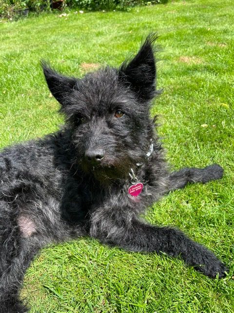 Mikka was the last baby off the happy bus in lockdown, one month late. You can imagine the excitement. Well, that was nearly eight months ago, we still chat with Sorrin. Kirk sadly passed away. But Mikka is the most loving and daft, silly, slipper loving dog I have ever rescued.