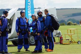 The 1 Dog Skydiving Team celebrating after their jump in August